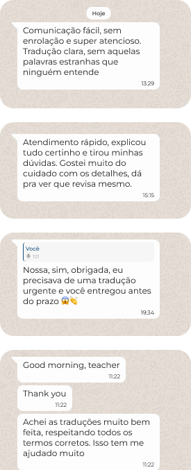 Após a tradução inicial, realizamos revisão, edição, formatação e controle de qualidade final. Esse processo garante que o resultado seja não apenas correto, mas também fluido e profissional.